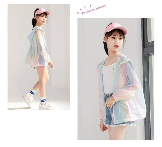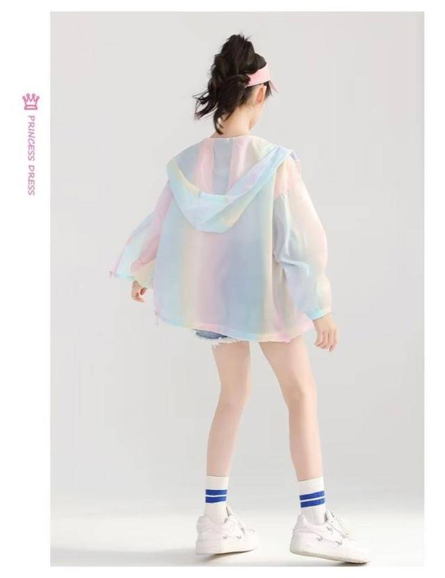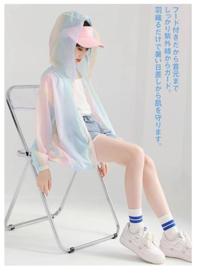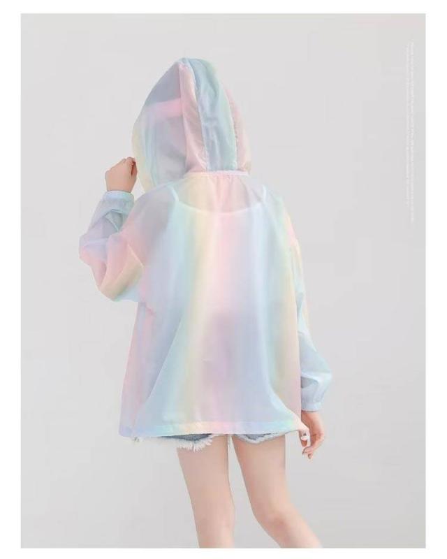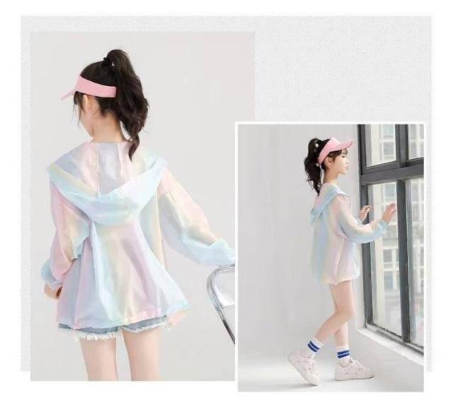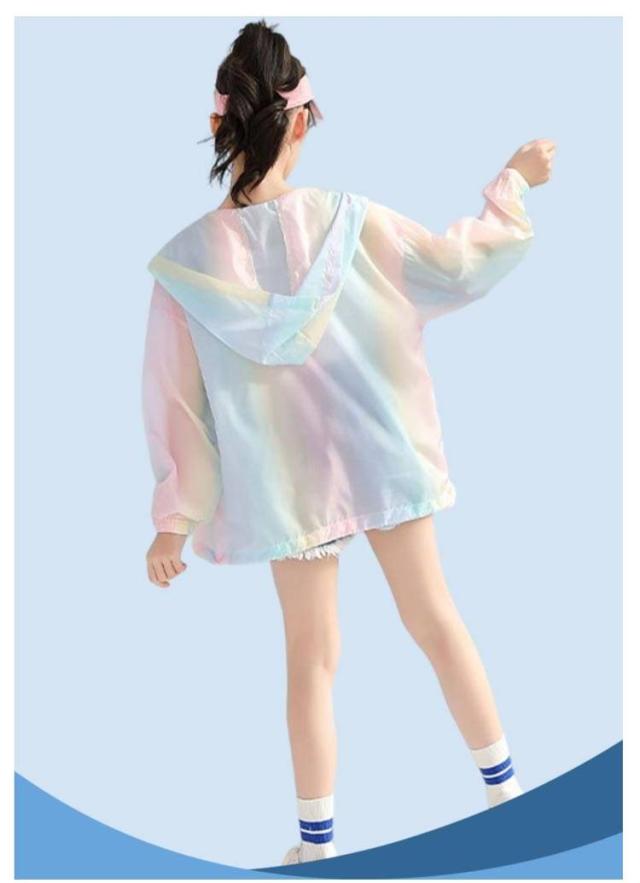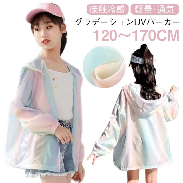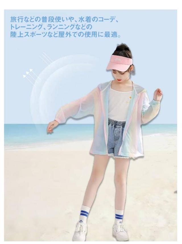 キッズ 女の子 UVカット パーカー 虹柄 軽量 薄手 夏 子供服 通気性 ジュニア ガールズ 接触冷感 ジップパーカー グラデーション 夏服 夏物 UVパーカー 虫よけ フード付きパーカー 日焼け止め 速乾 ラッシュガード 子ども 紫外線カット 長袖 ひんやり かわいい おしゃれ