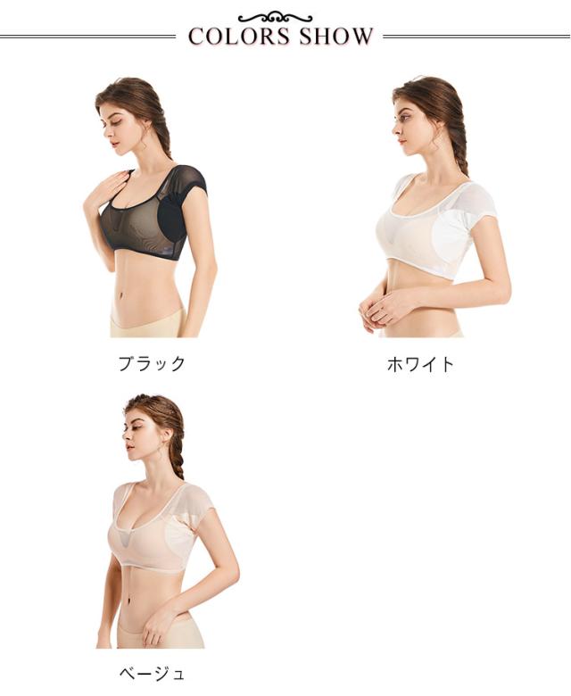 送料無料 汗取りインナー 半袖 脇汗パッド付 脇汗対策 汗染み防止 汗脇インナー レディース ショート丈 下着 肌着 Uネック 夏用 快適 速乾 吸汗 通気性 メッシュ ムレにくい