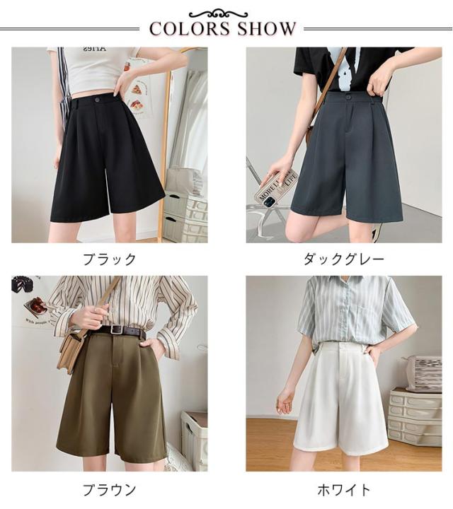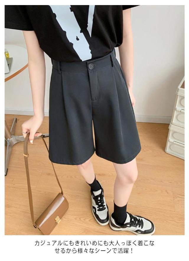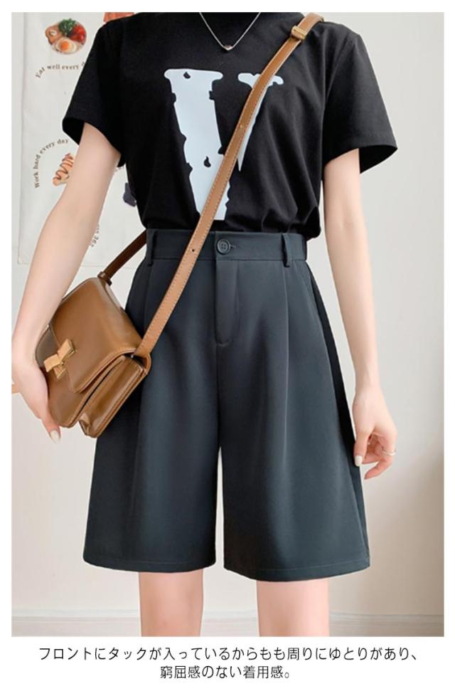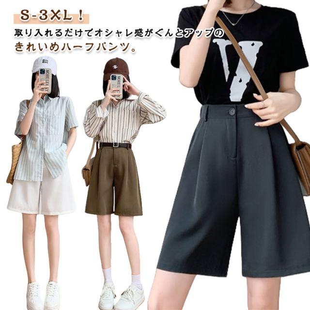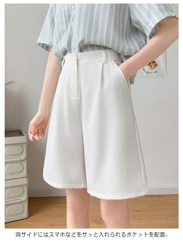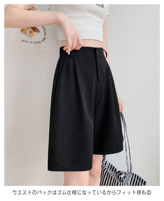送料無料 ショートパンツ レディース ハーフパンツ タックパンツ ショート丈 薄手 大人 Aライン 短パン 半ズボン きれいめ 後ろゴム ハイウエスト 5分丈 ポケット付き シンプル スリム 通勤 通学 おしゃれ かわいい