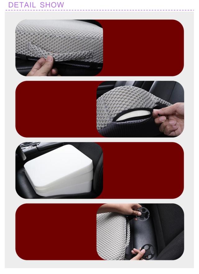 | 背の低い人向けの高さ調整カーシートクッション! 車専用に設計された傾斜形状が、正しい運転姿勢に導き、運転疲れをサポートします。 沈み込みを軽減するために高反発ウレタンを採用しています。 ズレによるストレス軽減のために、裏面に滑り止めを配置しています。 通気性に優れた快適カバーで夏にもムレなく、ベタつかず清潔にお使いいただけます。 | |