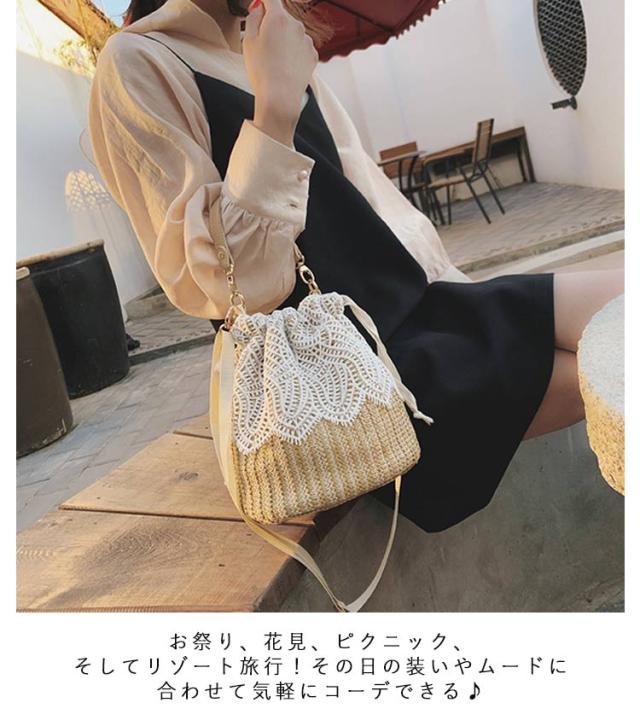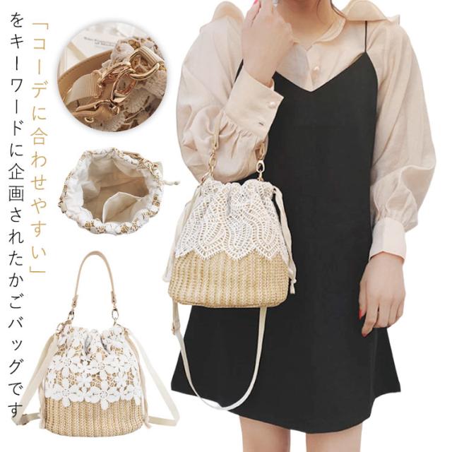 かごバッグ 浴衣 ショルダー バケットバッグ バケットバッグ ショルダーバッグ レディース 巾着 小さめ レースバッグ インナーポーチ ハンドバッグ 斜めがけ 大人 軽量 かわいい ストローバッグ 編みバッグ カゴバック 籠バッグ