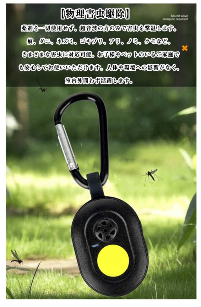 超音波 虫除け 小型 吊り下げ式 虫よけ キーホルダー 黄光虫よけ 360度シャット 充電式 7種類の周波数調整可 静音 IPX4防水 害虫対策 グッズ 無毒 無害子供 赤ちゃん ペット 妊婦 屋外 旅行 キャンプ 釣り スポーツ 公園 農場