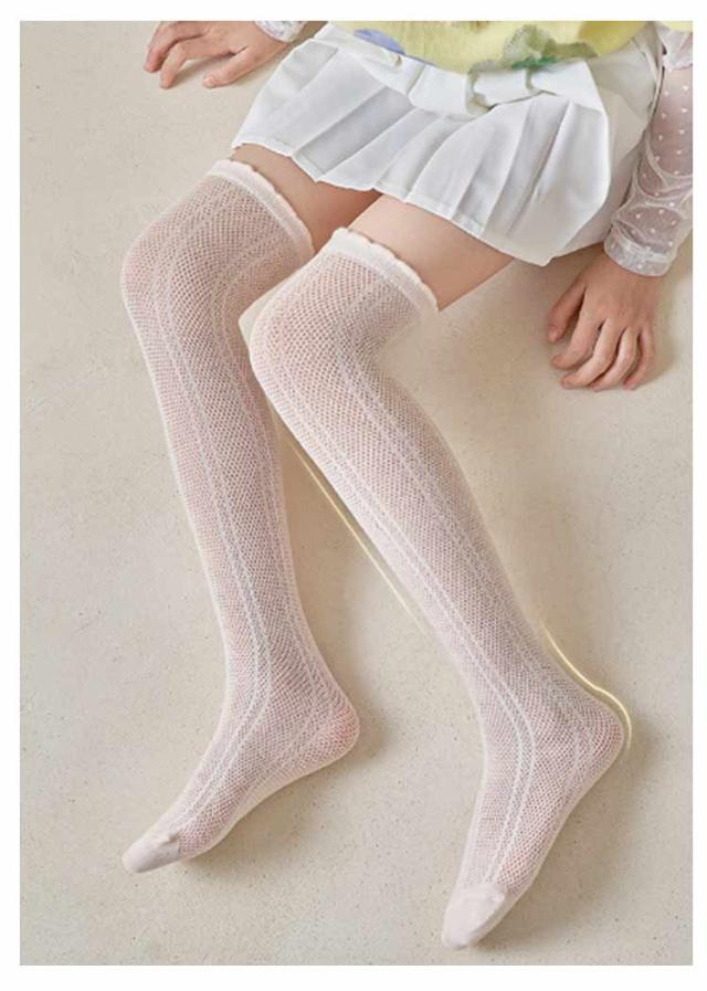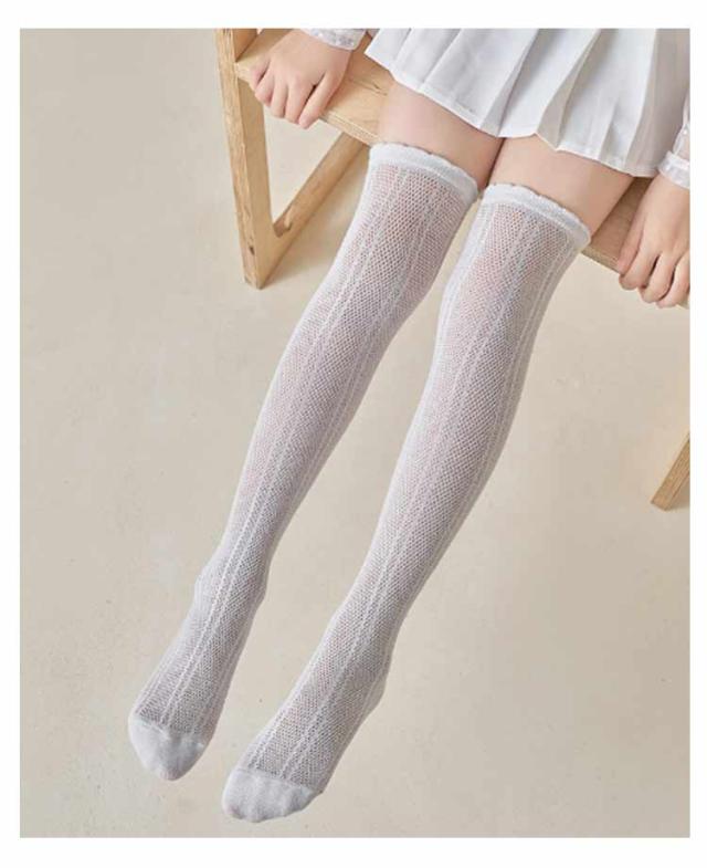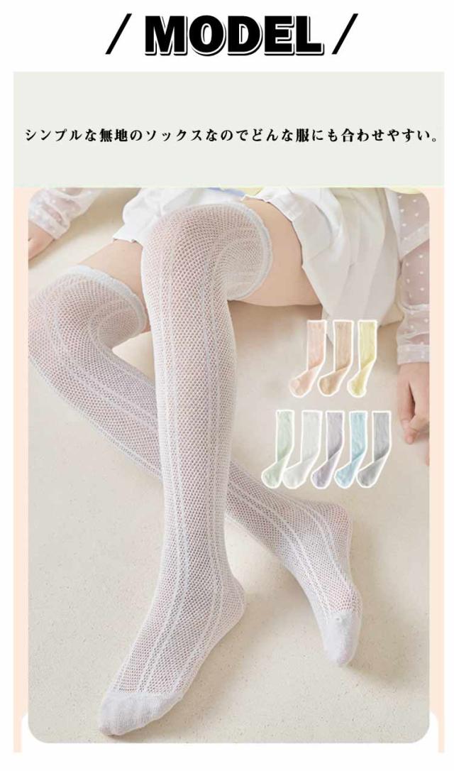 3足組 キッズ ハイソックス 夏 女の子 涼しい ニーハイソックス 薄手 靴下 ニーハイ メッシュハイソックス 膝上ハイソックス おしゃれ ソックス 蒸れない ジュニア 可愛い フリル M L 春夏用 ガールズ かわいい 子供 無地 送料無料