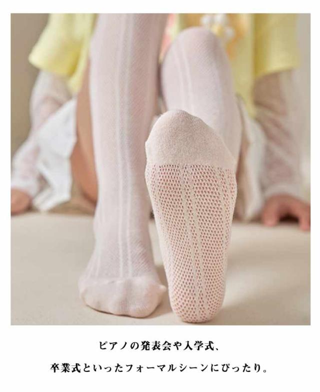 | 3足セット! 蒸れないメッシュコットン素材で可愛い子供用ニーハイソックス。 シンプルな無地のソックスなのでどんな服にも合わせやすい。 履き口の伸びが強すぎないので太ももを締め付けず、痕がつきにくい! ピアノの発表会や入学式、卒業式といったフォーマルシーンにぴったり。 | |