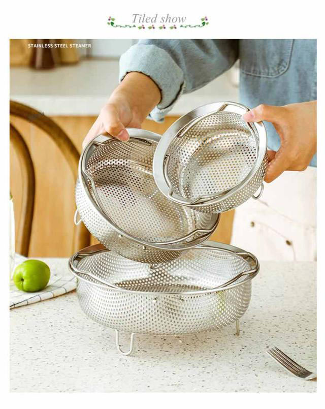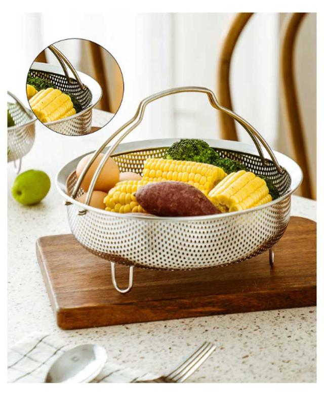 蒸しかご ステンレス 折りたたみ ハンドル 炊飯器 蒸し籠 メッシュ 調理 ざる ザル かご 蒸し料理 蒸しカゴ 深型 脚付き 蒸し鍋 蒸し野菜 温野菜 離乳食