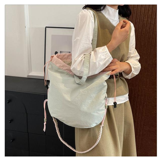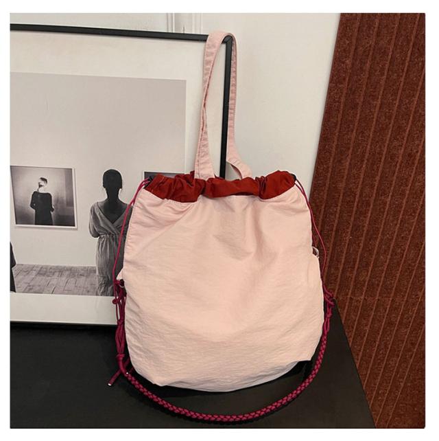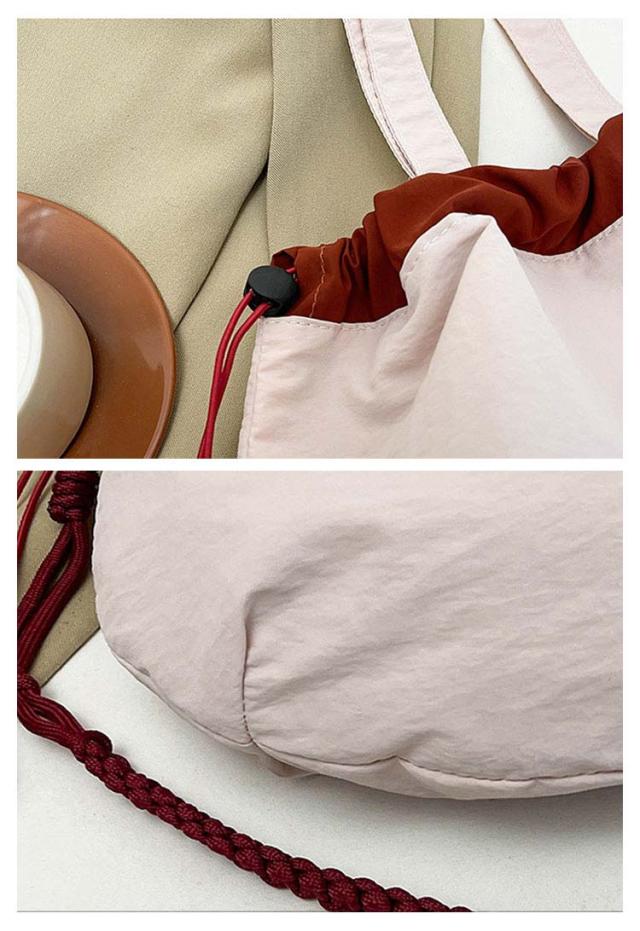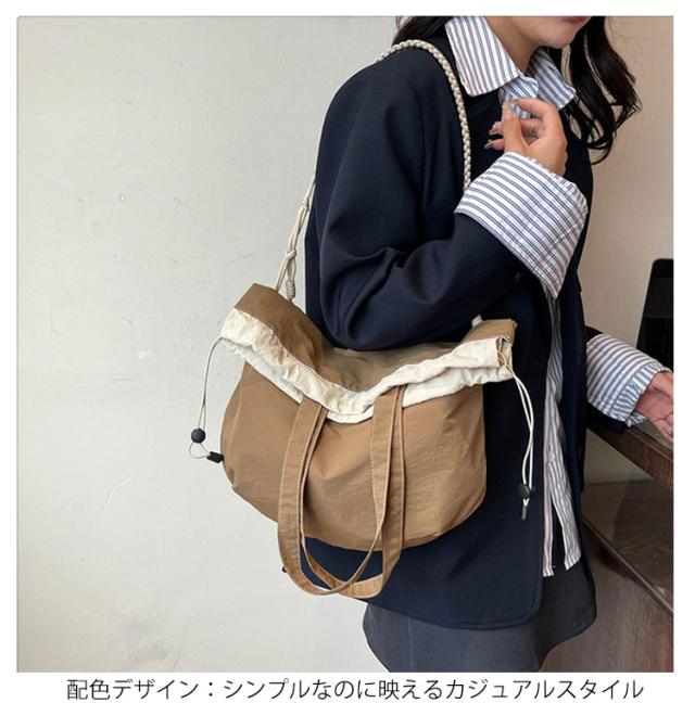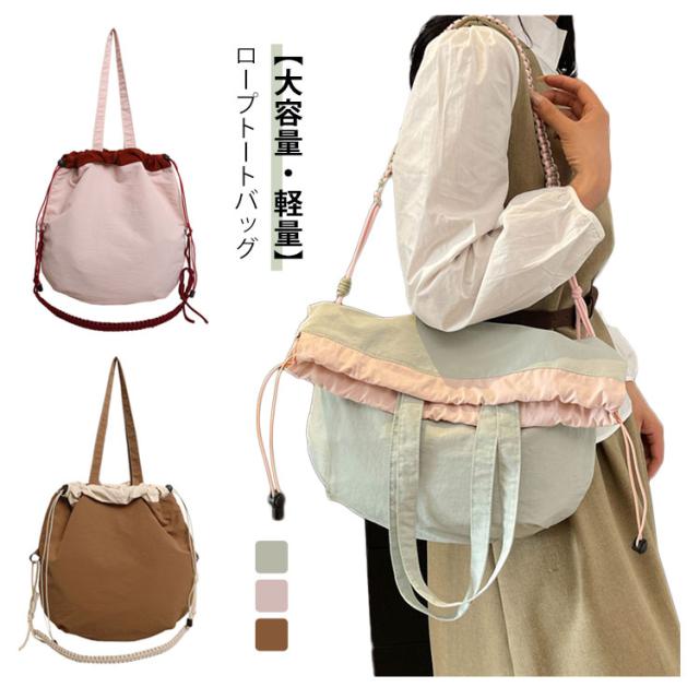 ロープトートバッグ レディース バイカラー 巾着バッグ ショルダーバッグ 2way 手提げ 肩掛け 斜め掛け ハンドバッグ 軽量 大容量 シンプル おしゃれ 通勤 通学 旅行 レジャー