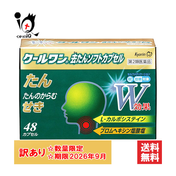 訳あり【第2類医薬品】★クールワン 去たんソフトカプセル 48カプセル【杏林製薬】鎮咳去痰薬 たん 痰 咳 せき 去たん カプセル【使用期限2026年9月】