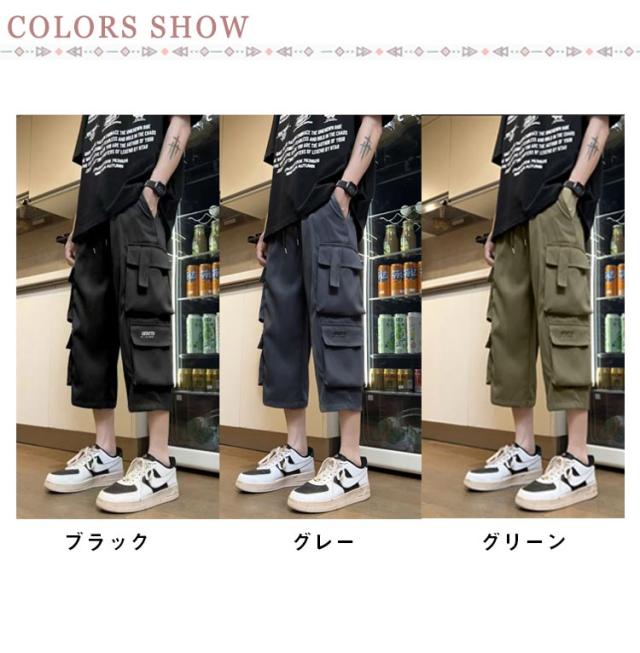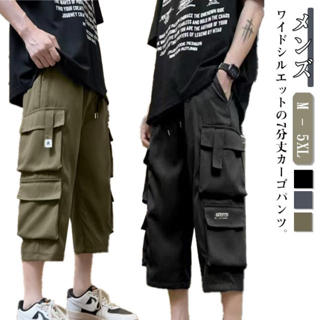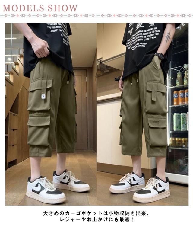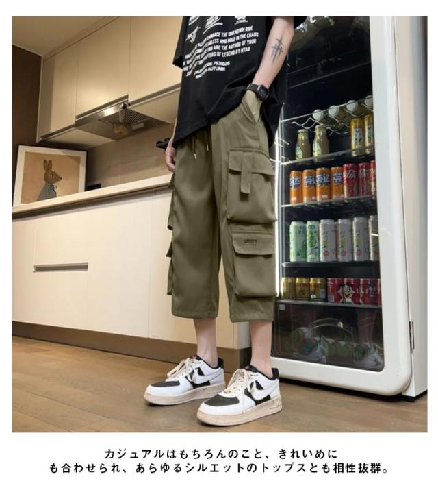 ミリタリーパンツ カーゴパンツ ゆったり ハーフパンツ ミリタリーパンツ 7分丈 大きいサイズ クロップドパンツ 無地 春物 秋物 ポケット 春服 膝下 7分丈パンツ ひざ下 カーゴ イージーパンツ カーゴパンツ 作業ズボン 男性用
