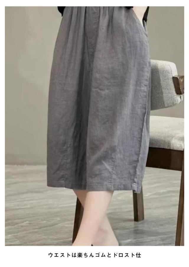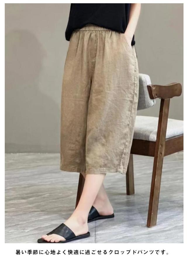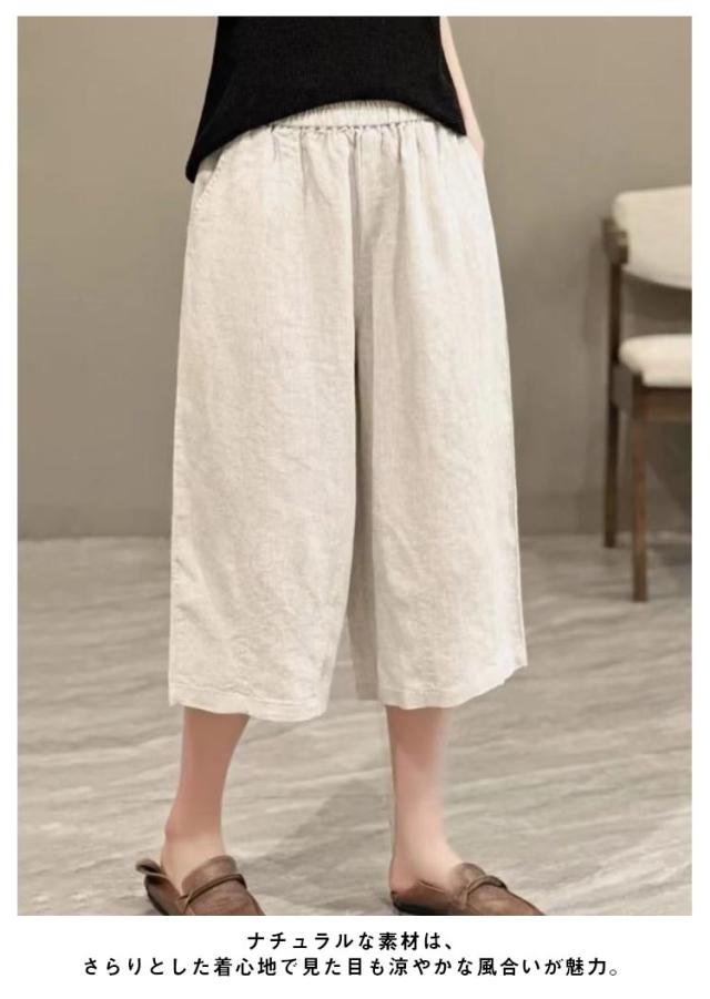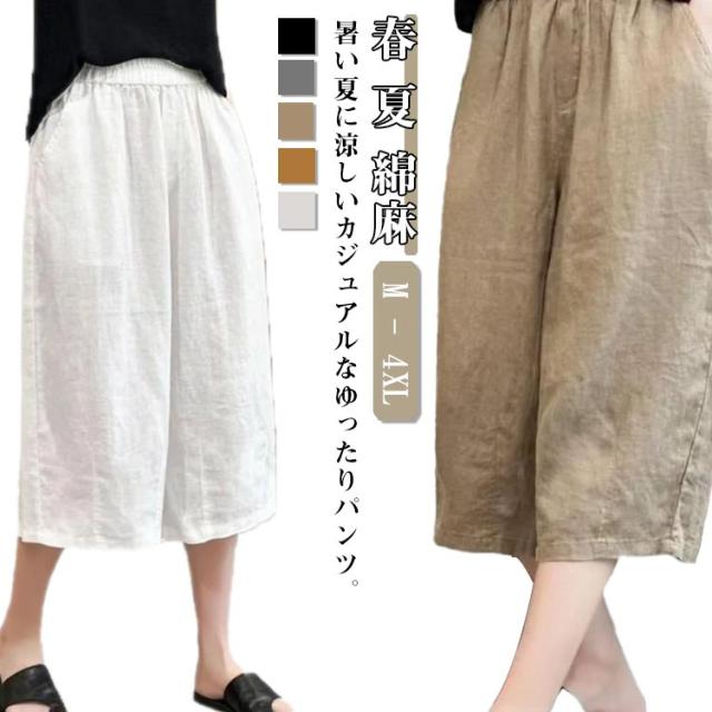クロップドパンツ 綿麻 リネン サマーパンツ リネン 春 リラックス 7分丈 テーパード 夏 リネンパンツ 麻 涼感 ドライ レディース ストレート ワイド サマーパンツ 涼感 パンツ イージーパンツ ウェストゴム 体型カバー