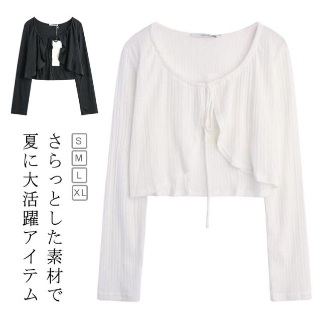 ショート丈 着痩せ 長袖 レディース トップス 夏 薄手 2枚セット 春 カーディガン 無地 uvカット 通勤 冷房対策 Vネック 羽織り 可愛い お洒落 女性らしい uvカット 大きいサイズ 紫外線対策 冷房対策 羽織 レイヤードプレゼント