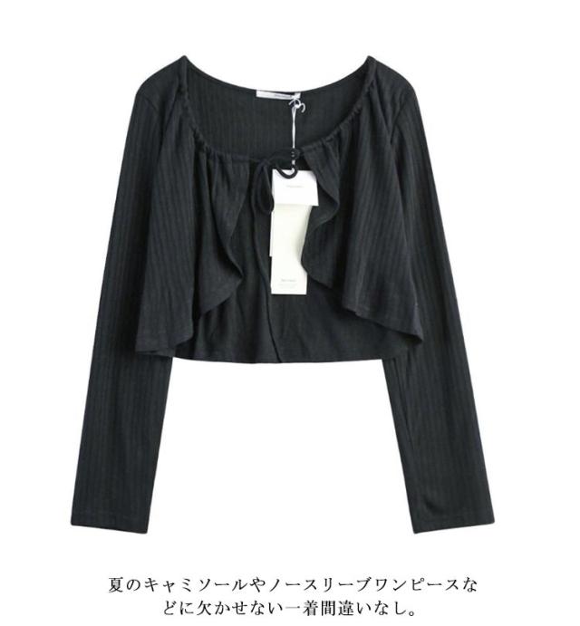 | さらっとした素材で夏に大活躍アイテム 長めのスリーブとショート丈デザインがスタイル効果が期待できます。 折りたためる柔らか素材なのでコンパクトサイズにできて持ち運びに便利! 夏のキャミソールやノースリーブワンピースなどに欠かせない一着間違いなし。 | |