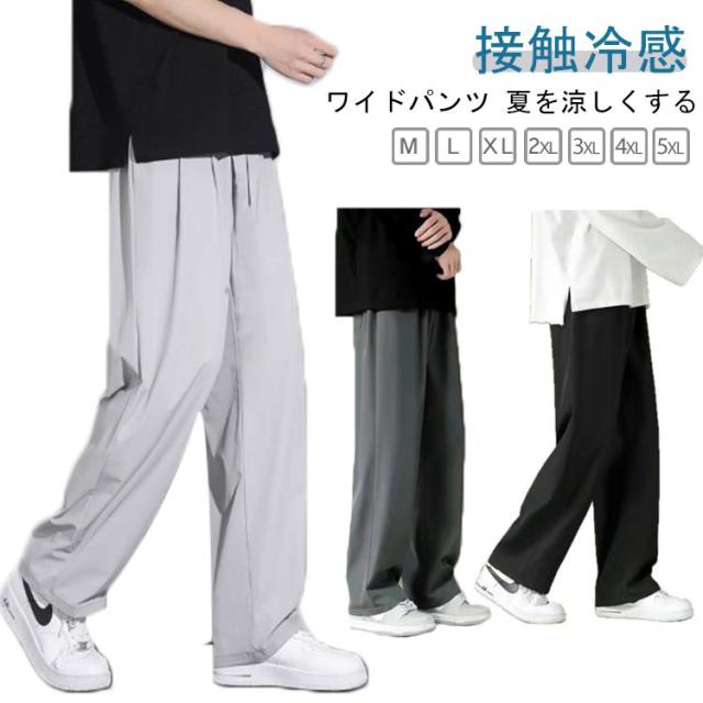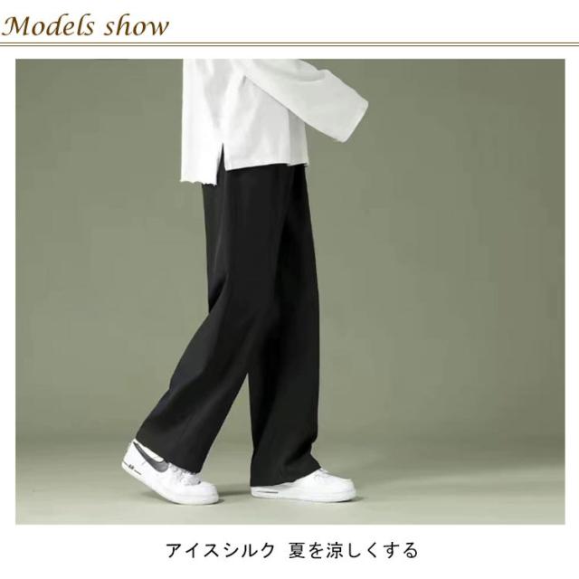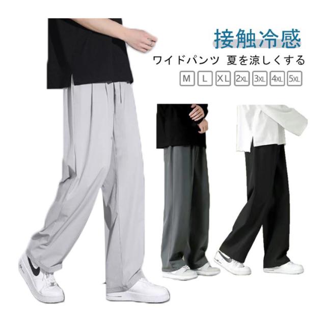 | 接触冷感 ワイドパンツ M-5XL アイスシルク 夏を涼しくする スムーズで爽快なアイスシルクの感触 快適で肌に優しく、通気性が良く蒸れません | |