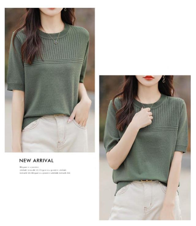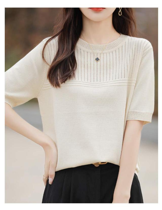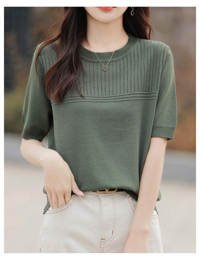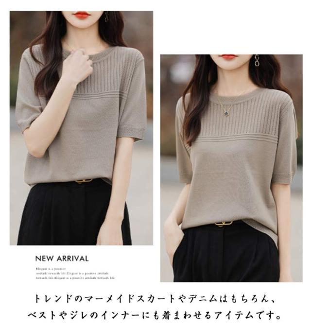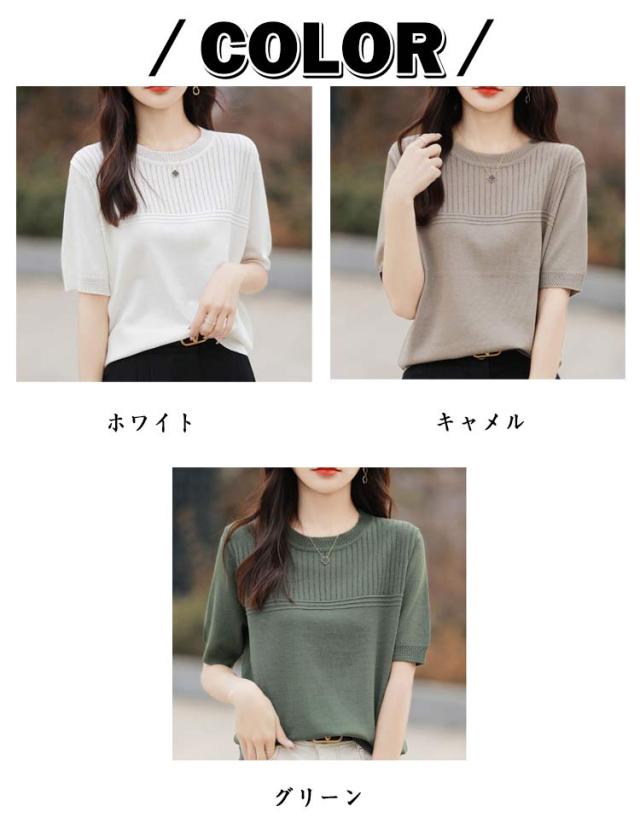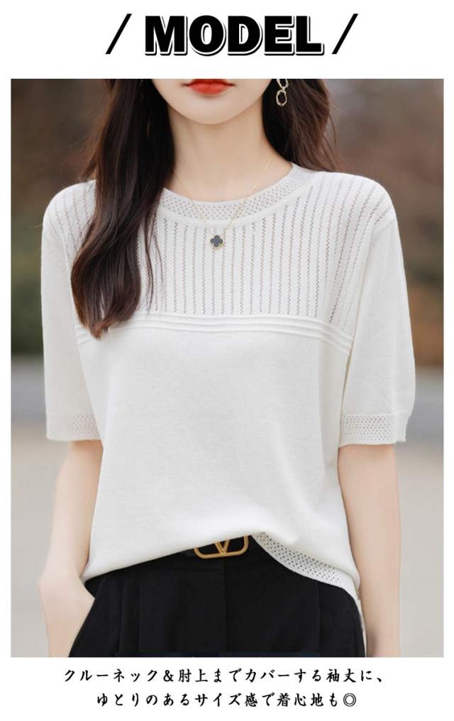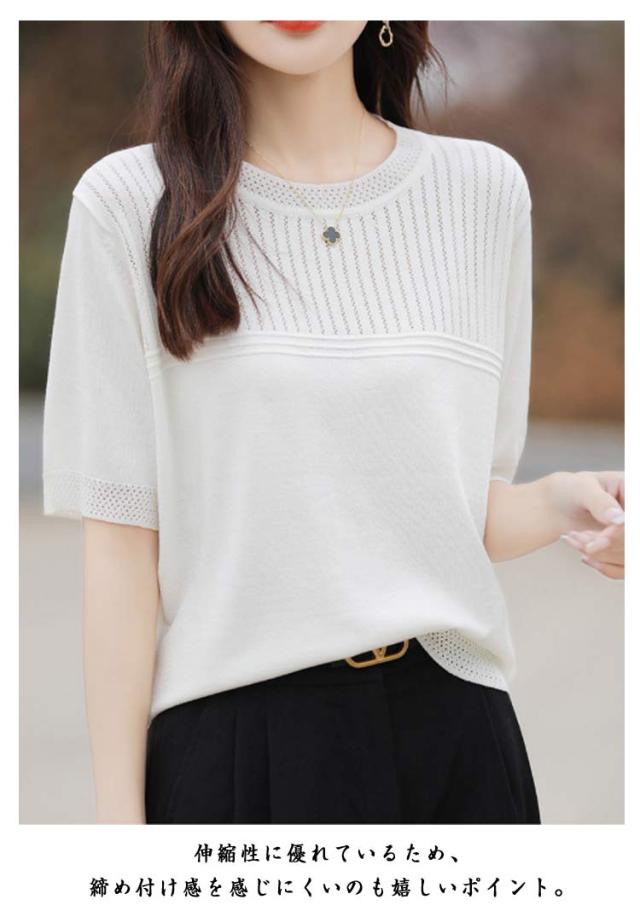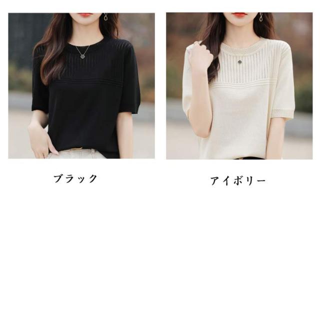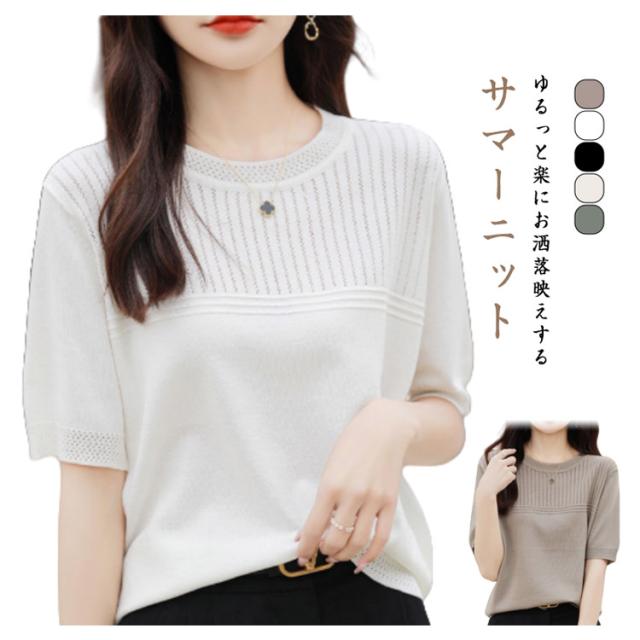 レディース サマーニット 透かし編み ゆったり 夏ニット サマーニット ストレッチ 夏 五分袖 おしゃれ 春 女性 切替 セーター ナチュラル シンプル 薄手 無地 半袖 大人 体型カバー クルーネック お洒落 薄手 細見え プルオーバー 通勤 トップス