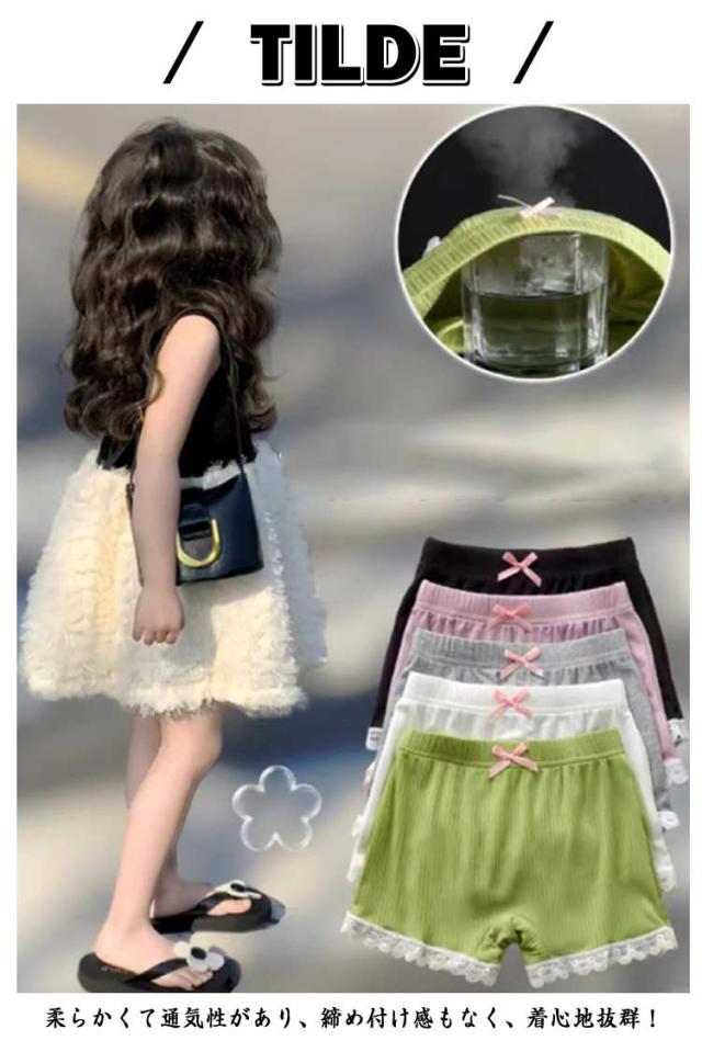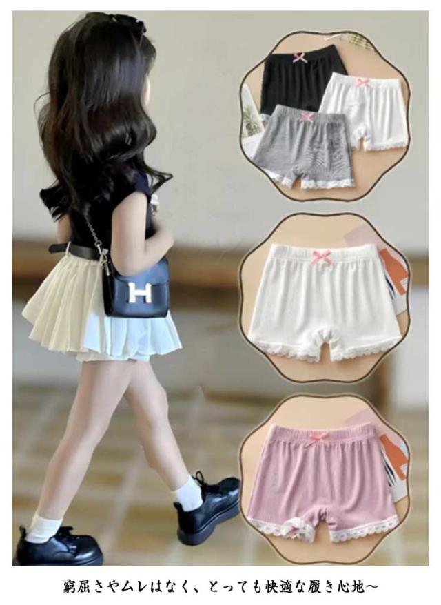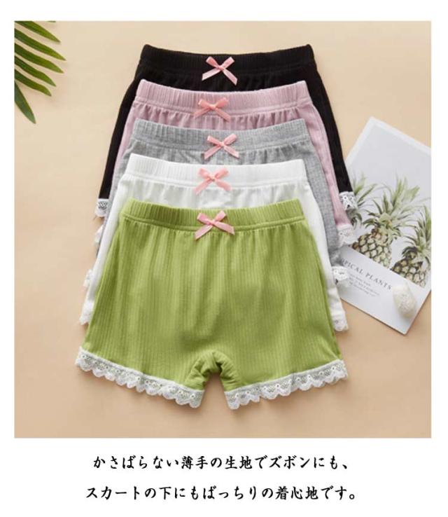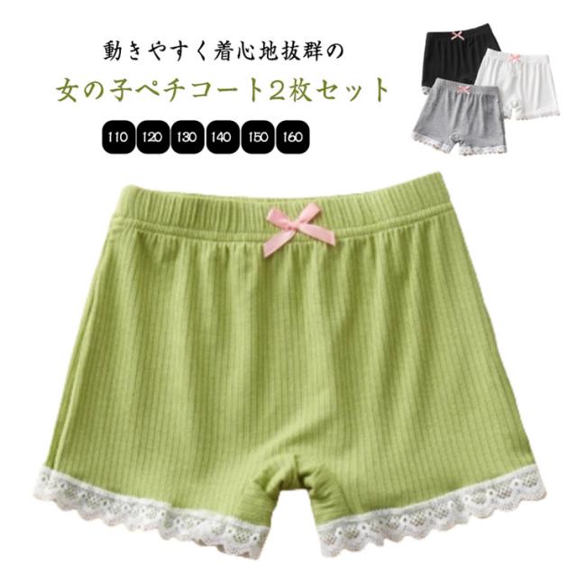 2枚セット ペチコート 透けない ショート丈 ペチパンツ パンツ ショートレギンス 女の子 キッズ レギンス インナーパンツ アンダーパンツ ペチコート レース スパッツ 小学生 リボン 薄手 蒸れない 快適 大きいサイズ 2枚組 ジュニア ボトムス 肌着 下着
