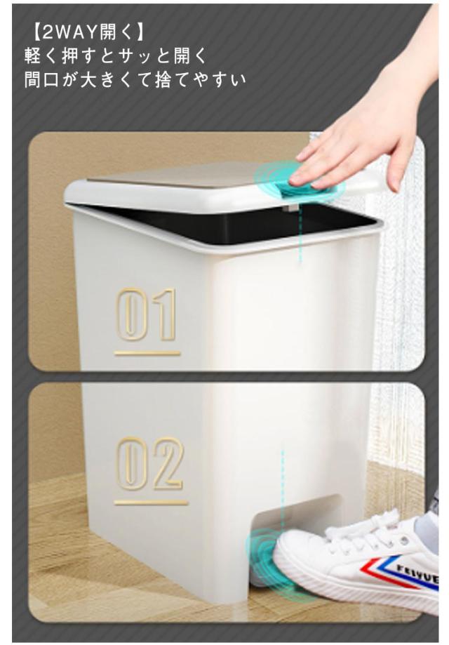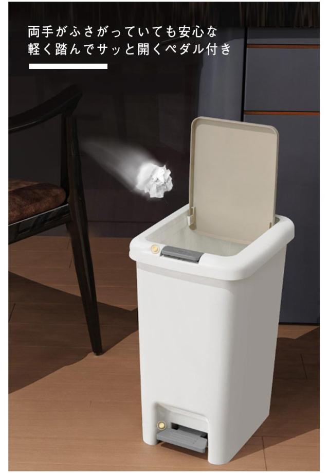 | 【6.5L 8L 10L 15L】【蓋付き】【2WAY開く】 スリムなダストボックス、省スペースでスッキリ置ける シンプルなデザインなので、どんなシーンにもマッチする。 オフィスのデスクサイドやデスク下、トイレや洗面所などの限られたスペースでの設置にもおすすめです。 袋止め付きでポリ袋の脱着も簡単。 両手がふさがっていても安心な軽く踏んでサッと開くペダル付き 【2WAY開く】軽く押すとサッと開く 間口が大きくて捨てやすい ビニール袋をカバーで隠す構造 フタ付きで、生ゴミ、おむつ、ペットシーツなどニオイが出るゴミを入れるのに最適です。 | |