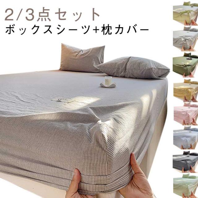 セミダブル セット 枕カバー 寝具セット ピローケース シングル ベッド用 敷きカバー ボックスシーツ ベッドボックスシーツ 洋タイプ 和タイプ マットレスカバー 乾きやすい 洗濯できる 2/3点セット/ボックスシーツ+枕カバー 洗える ボックスシーツ チェック柄