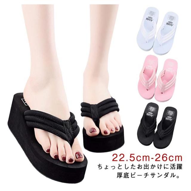 | 22.5cm-26cmちょっとしたお出かけに活躍 厚底ビーチサンダル。 レディース用 お洒落なサンダル。海やプールに出かけた時にオススメ! 熱い砂浜やプールサイドなどを歩く時の必需品です♪ お洒落かつシンプルな仕上がりになっておりますのでファッションとして普段履きとしても十分に使えます☆ 厚底で美脚になれて、ビーチでも普段使いでも活躍してくれるITEMです! シンプルなデザインなので海やプールに行くときにはもちろん、 デートから普段使いまで、幅広く活躍してくれて浴衣にだって違和感なく履けちゃいます! | |