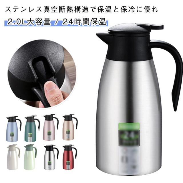 魔法瓶 注ぎやすい 大容量 保冷 2リットル 2.0L ステンレス 保温 真空断熱 魔法瓶 おしゃれ 持ち運び ポット 洗いやすい 省エネ 節電 お湯