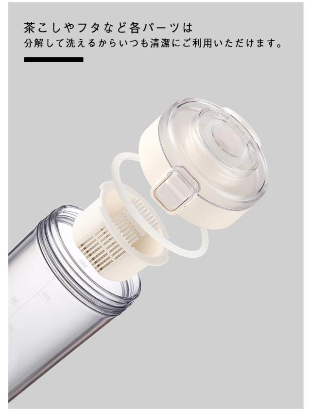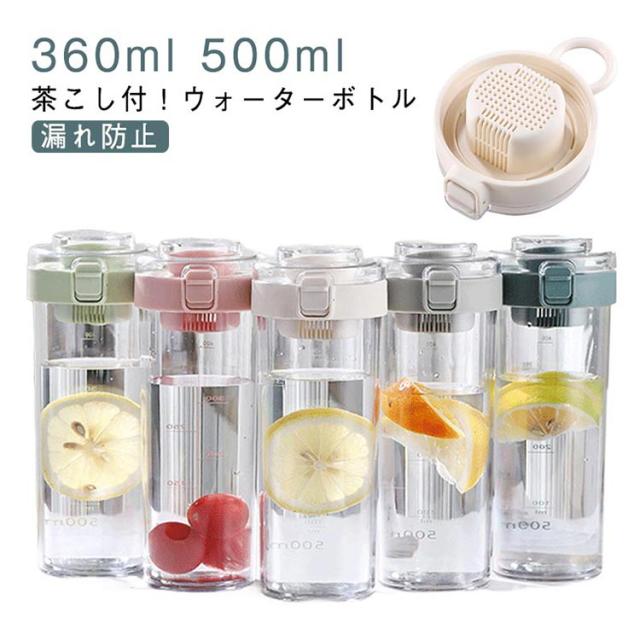 ウォーターボトル 茶こし付き 直飲み水筒 蓋つき 耐冷耐熱 360ml 通学 目盛り付き クリアボトル 洗いやすい ウォーターボトル 500ml ウォーターボトル ワンタッチオープン ボトル 通勤 オフィス 高い密封性 軽量 漏れ防止