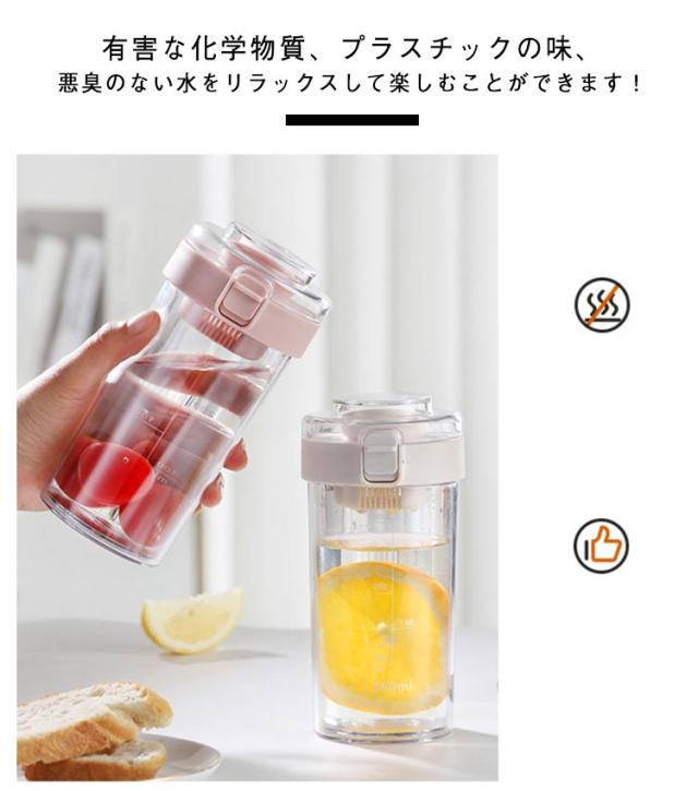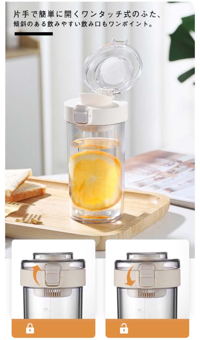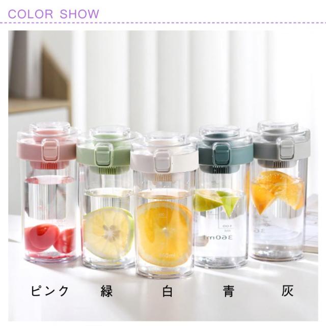 | 360ml 500ml 茶こし付! お茶やお湯の沸かしたてをそのまま注ぐことができ、便利に使えるウォーターボトル。 片手で簡単に開くワンタッチ式のふた、傾斜のある飲みやすい飲み口もワンポイント。 安全、非毒性、耐久性この飛散防止、軽量、再利用可能なウォーターボトルは、 有害な化学物質、プラスチックの味、悪臭のない水をリラックスして楽しむことができます! シンプルなフォルムで透明なスタイリッシュなデザインでおしゃれに持ち運べます。 食品グレードPP素材の茶こし付き、茶葉やコーヒー、果物、アイスなどを入れて、楽しく飲むことができます。 茶こしやフタなど各パーツは分解して洗えるからいつも清潔にご利用いただけます。 | |