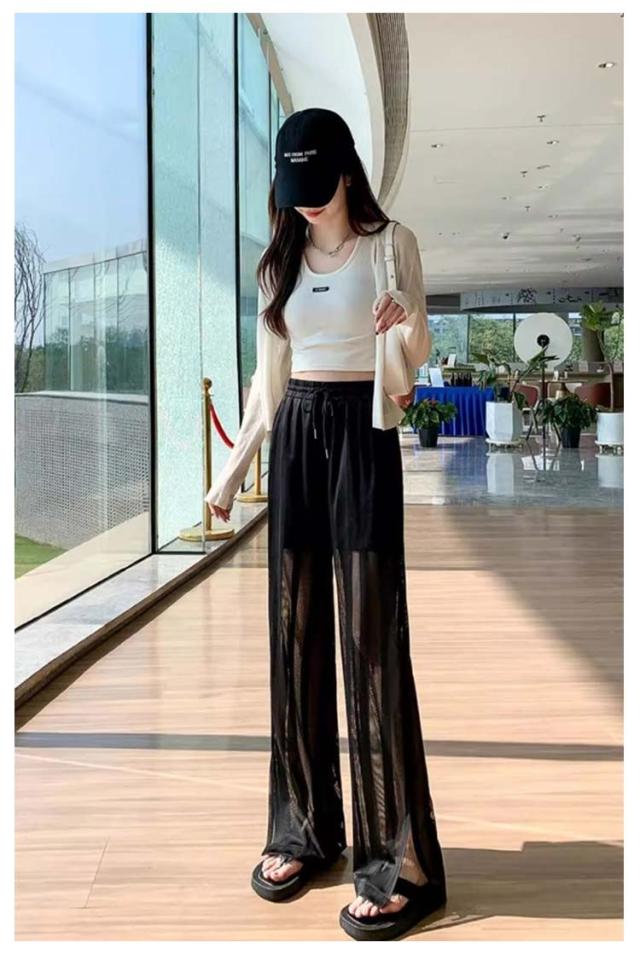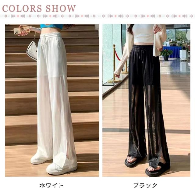 紫外線対策 シアーパンツ ボトムス 接触冷感 ラッシュガード 長ズボン ウエストゴム UVカット 水着 レディース ひんやり 薄手 重ね着 ロングパンツ ワイドパンツ 夏 涼しい 脚長効果 ラッシュパンツ ラッシュガード 体型カバー ゆったり ルームウェア