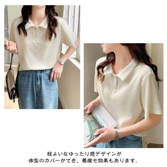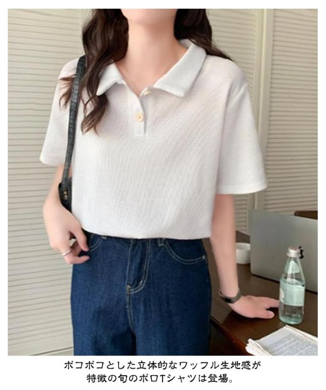 レディース 可愛い 半袖 トップス きれいめ ゴルフ ポロシャツ 夏服 無地 薄手 ルームウェア 夏 半袖ポロシャツ ワッフル 送料無料 普段着 シンプル 通勤 通学 ゆったり 送料無料 レジャー カジュアル スポーツウェア Tシャツ 襟付き
