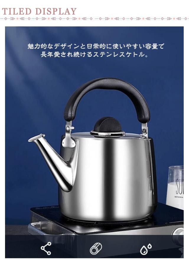 直火対応 笛吹き ih 家庭用 ステンレス やかん シンプル 笛吹ケトル 使いやすい やかん ステンレスケトル IH対応 錆びない ヤカン 大容量 ケトル 業務用 会社 事務室 ケトル 笛付き シンプル プレゼント ギフト