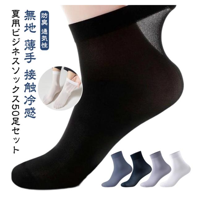 薄手 ビジネスソックス 接触冷感 通気性 吸汗 メンズ くつ下 クルーソックス スニーカーソックス 無地 ショートソックス 夏用 靴下 履きやすい 速乾 涼しい ソックス 紳士靴下 通勤 通学 ひんやり 蒸れない 臭わない 防臭 50足セット おしゃれ 無地