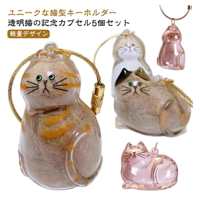 ペット 遺毛入れ キーホルダー 猫のキーホルダー ネコ 透明カプセル 遺毛入れ 【5個セット】猫の毛収納ボトル 遺毛 ケース 透明 キーホルダー キーホルダー 猫の毛収納ボトル ペット 猫毛 毛を保管するボトル かわいい ペットひげ・抜け毛収納 携帯 ねこ 猫