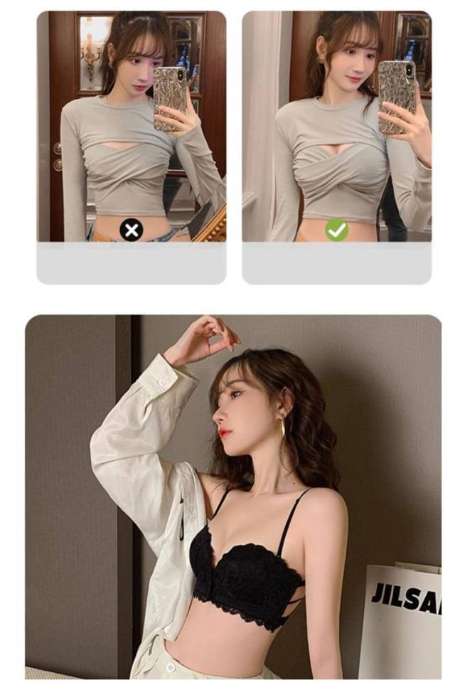 | 総レースで超かわいい!超盛り 着けた瞬間、谷間アップ! 大きく魅せるブラ ◎肩や胸元のあいたドレスに絶対おすすめ! ◎ストラップレスなのでサイドホックで美乳をメイク。 ◎ノンワイヤーで優しい着け心地♪立体カップで綺麗なシルエットに。 ◎カップ部分は柔らか素材で通気性があり汗ばむ季節も快適♪ ◎フロントホック設計で、着ける瞬間に谷間アップ! ◎ストラップレスは肩や背中開いた服やドレスの時だけでなく肩紐の食い込みや肩こりのお悩みも解決できる! ◎肩紐もついているので、通常のブラジャースタイルとしてもOK! ◎ドレススタイルの他、オフショルや夏のファッションにも大活躍間違いなし! | |