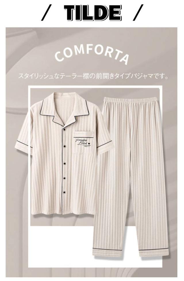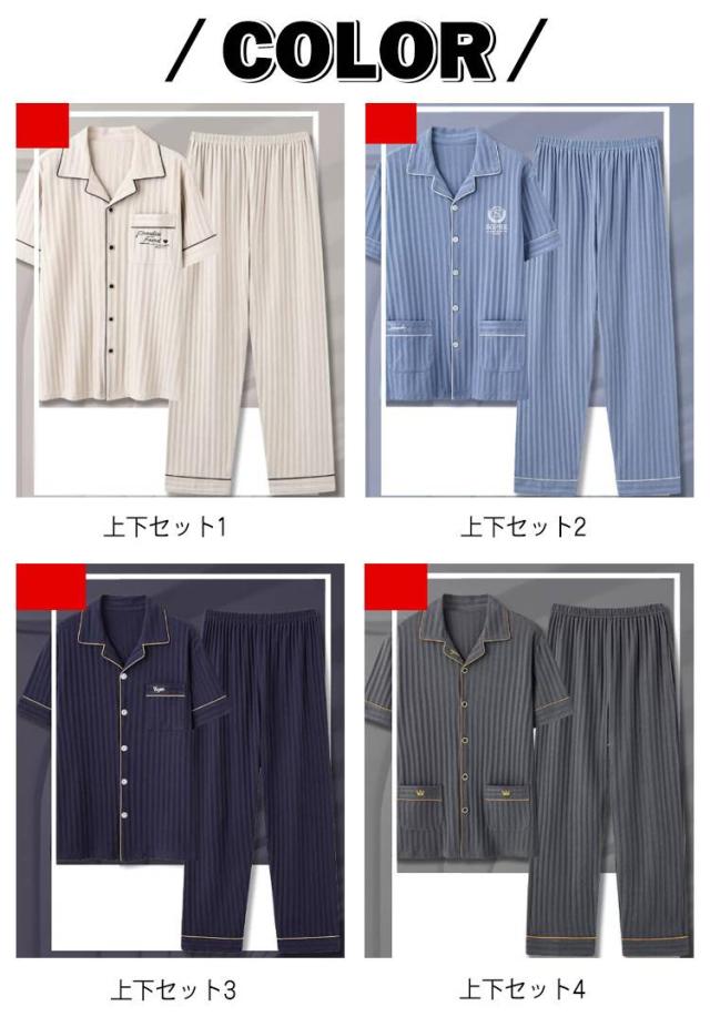 真夏 綿100% ルームウェア メンズ メンズパジャマ パジャマ 夏用パジャマ 夏用 薄手 半袖 長ズボン 上下セット 半袖ルームウェア 大きいサイズ 折り襟 部屋着 シンプル ナイトウェア 寝巻き