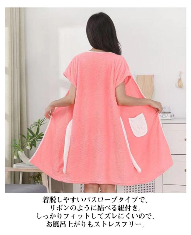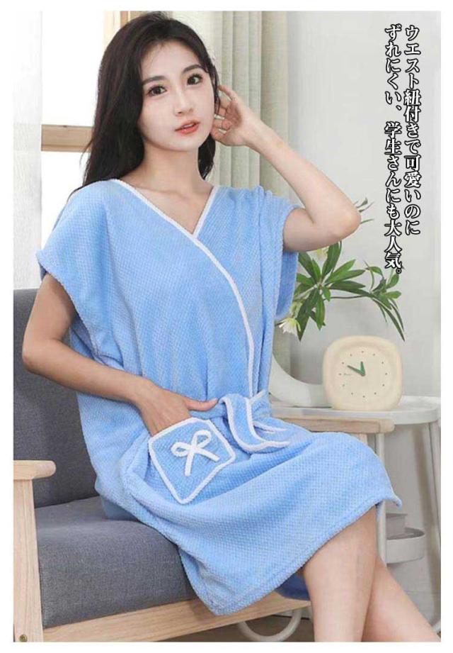 バスローブ ウエスト紐付き 可愛い 夏用 吸水速乾 湯上がり バスローブ Vネック 部屋着 学生向け パジャマ お風呂上がり レディース 柔らかい 軽量 ポケット付き ルームウェア 大人可愛い フリーサイズ ふわふわ