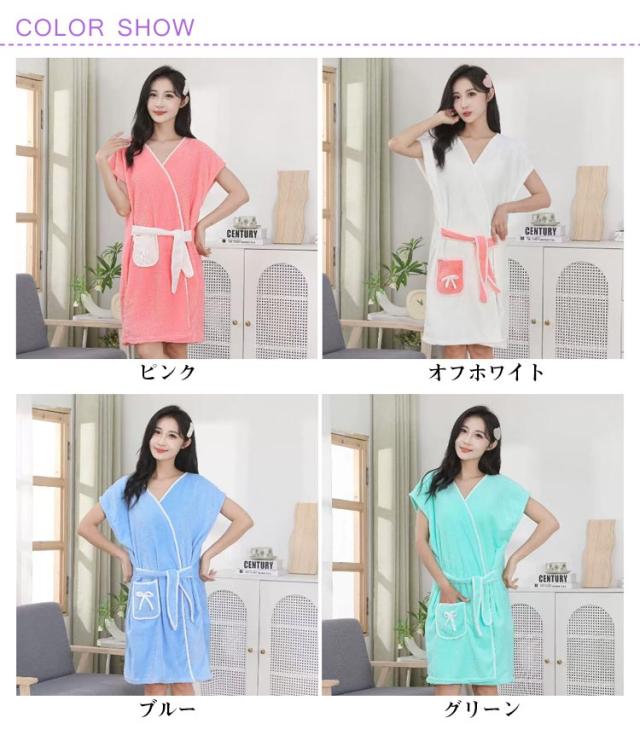 レディース 部屋着 バスローブ Vネック バスタオル 学生向け パジャマ 可愛い ウエスト紐付き 夏用 バスローブ お風呂上がり 湯上がり 柔らかい 軽量 ポケット付き ルームウェア 大人可愛い フリーサイズ ふわふわ