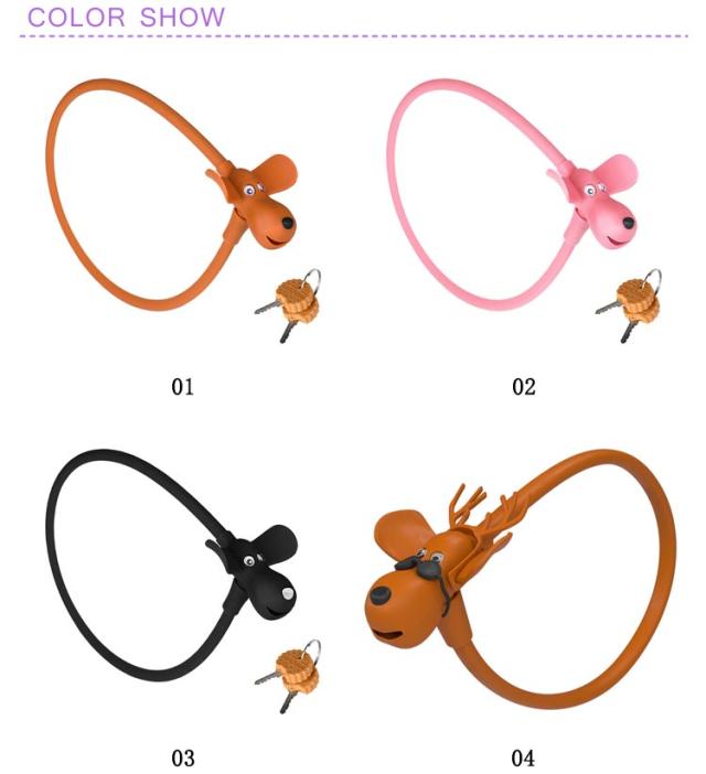 | ビスケットを咥える姿がとってもCUTE!! 犬のキャラクターが目を惹くシリコンワイヤーロック! カチッと差し込むだけの簡単カギ式です。 シリコン素材なので自転車を傷つけず、かわいく盗難防止ができます◎ お子様にも、プレゼントにもおすすめです。 | |