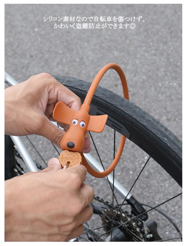 自転車 鍵 ビスケット型 カギ式 鍵式 盗難防止 自転車 施錠 防犯グッズ ドッグロック シリコン いぬ 軽量 可愛い キャラクター 自転車ロック ギフト プレゼント 携帯便利