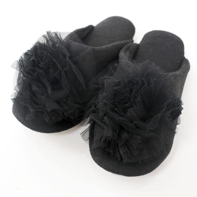 ◆商品名:[チュチュ] レース スリッパ ルームシューズ (ブラック)