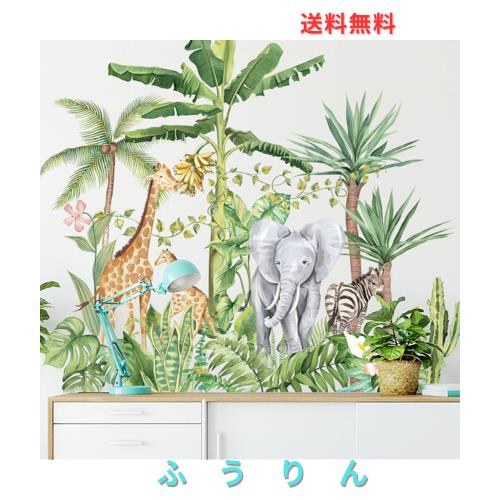 HOTIYOK ウォールステッカー 熱帯雨林 木 おしゃれ ジャングル 動物 壁紙シール かわいい 象 キリン 剥がせる 壁ウォールステッカー はが