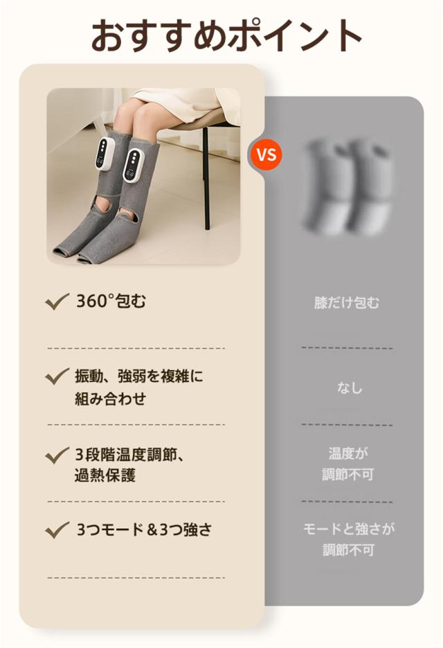 レッグマッサージャー 膝 レッグウォーマー 温熱ヒーター 空気圧 足先 腕 3段階温感 コードレス 3段階強度 USB充電式 コンパクト 家庭用 お年寄り 敬老の日 母の日 父の日 プレゼント 男女兼用 サイズ調節可 マッサージ 足裏 すね タイマー機能 折り畳み可能 静音 足裏 通勤