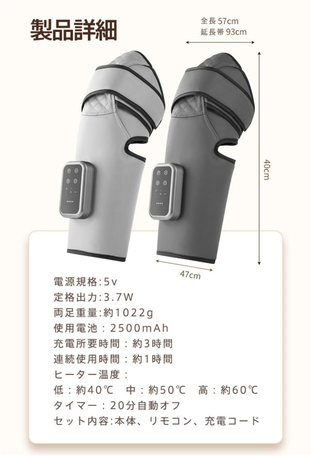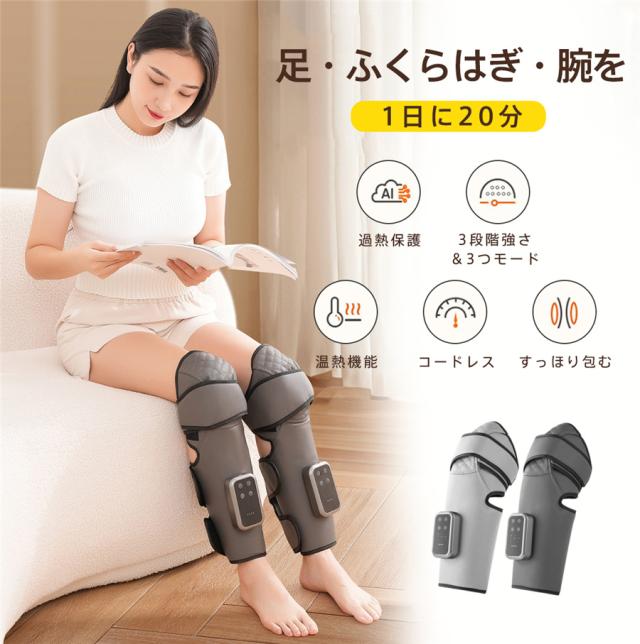 レッグマッサージャー 膝 レッグウォーマー 温熱ヒーター 空気圧 足先 腕 3段階温感 コードレス 3段階強度 USB充電式 コンパクト 家庭用 お年寄り 敬老の日 母の日 父の日 プレゼント 男女兼用 サイズ調節可 マッサージ 足裏 すね タイマー機能 折り畳み可能 静音 足裏 通勤