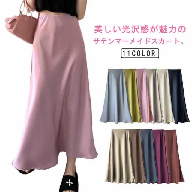サテンスカート スカート マーメイドスカート サテン ロングスカート フレア ハイウエスト サテン ボトムス サテン 韓国ファッション スリムフィット 光沢 ツヤ ロング丈 カラバリ シンプル お出かけ フェミニン 無地