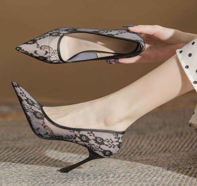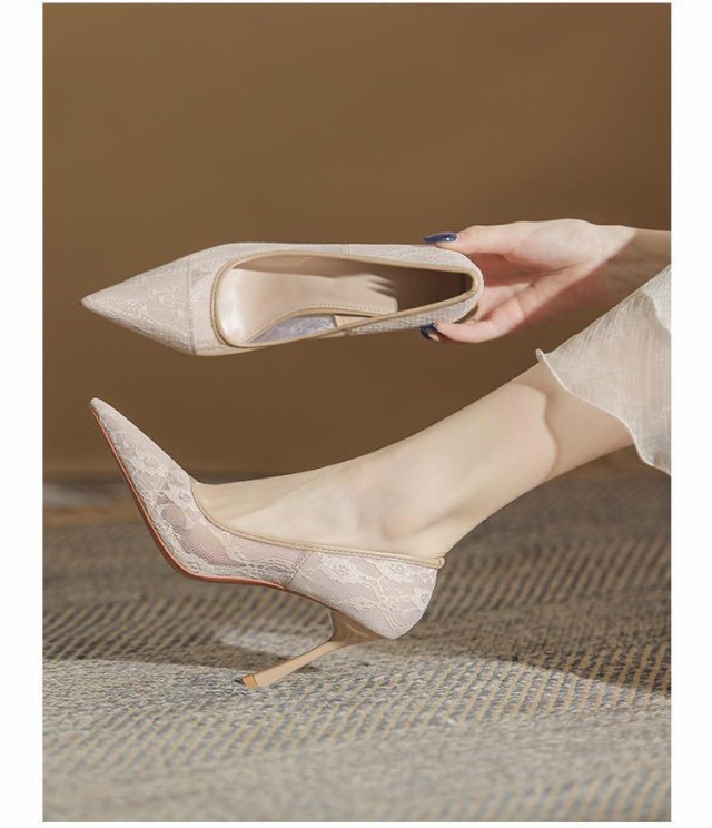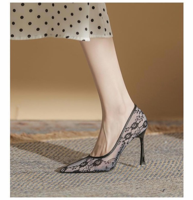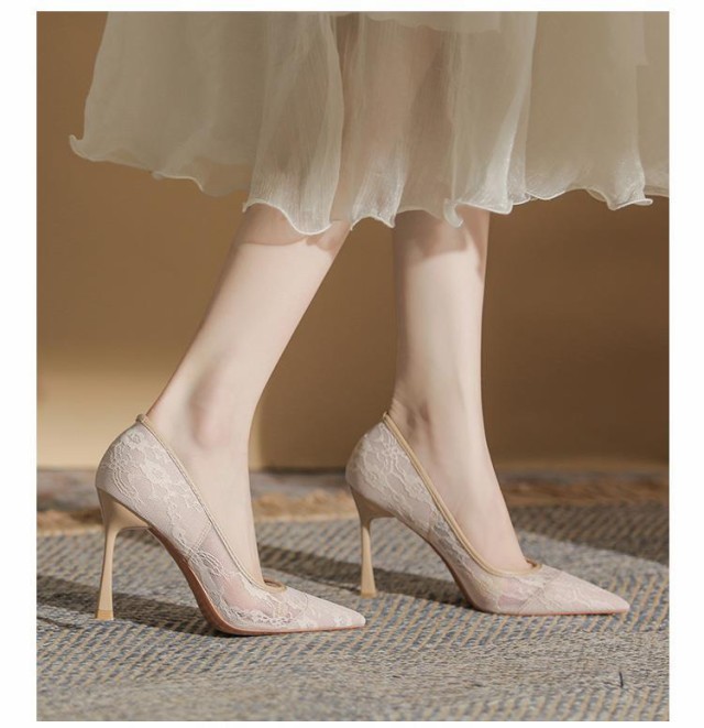 パンプス 靴 結婚式 ポインテッドトゥ レディース 痛くない レース メッシュ 美脚パンプス ハイヒール 9cmヒール お呼ばれ 謝恩会 入学式 卒業式 パーティー