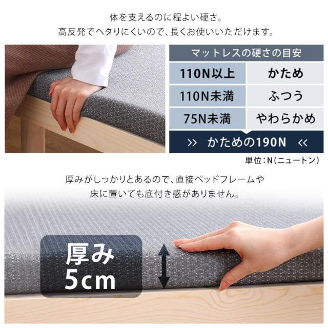 190Nと高反発でヘタりにくいので、長く使っていただけます。