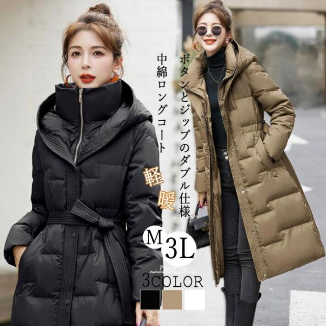中綿コートレディーススタンドカラーベンチコートダウンコートアウター コート ロングコートフード付き ボリュームネックaライン 大きいサイズ 厚手暖か 防寒対策軽量 防寒 秋冬M L 2L 3L