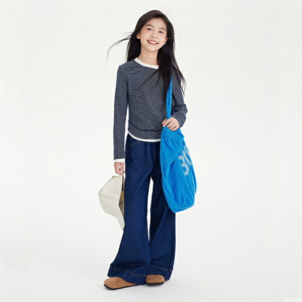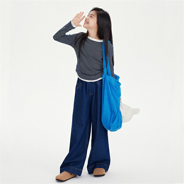 ジーンズ 子供服 キッズジーパン デニム パンツ ボトムス ロングパンツ ブルー おしゃれ デニムパンツ ワイドパンツ 綿 長ズボン