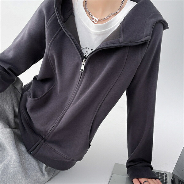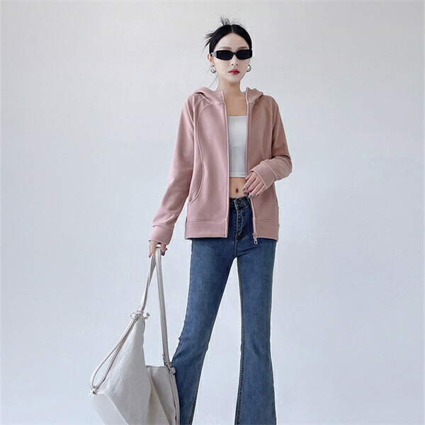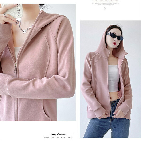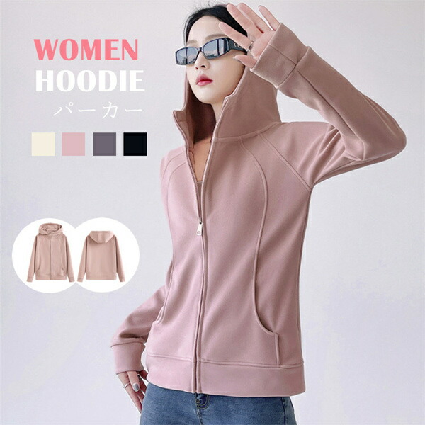 パーカー ジップパーカー トレーナー スウェット 長袖 秋 女性 レディース 無地 ジップアップ パーカー トップス 女 ベージュ ピンク