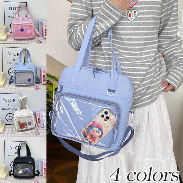 検索キーワード 痛バッグ ショルダーバッグ クリアバッグ レディース デコ 透明ポケット ビニール キャンバス地 軽量 痛バ ガールズ トートバッグ 大学生 学生バッグ 学生かばん カジュアル 通勤 通学 通勤バッグ バッグ トートバック かわいい 可愛 カジュアル おしゃれ 肩掛け 旅行