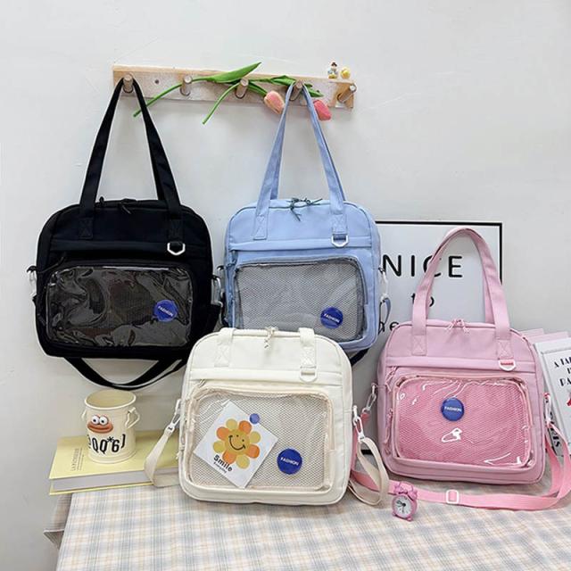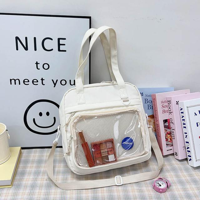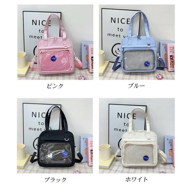 痛バッグ ショルダーバッグ クリアバッグ レディース デコ 透明ポケット ビニール キャンバス地 軽量 痛バ ガールズ トートバッグ 大学生 学生バッグ 学生かばん カジュアル 通勤 通学 通勤バッグ