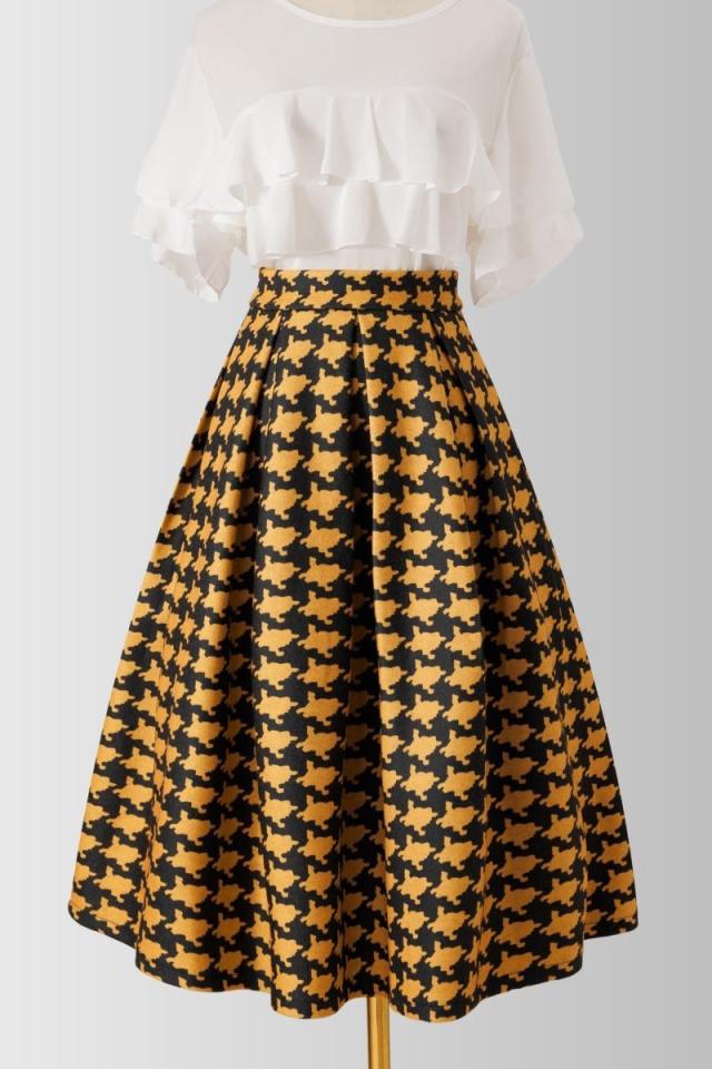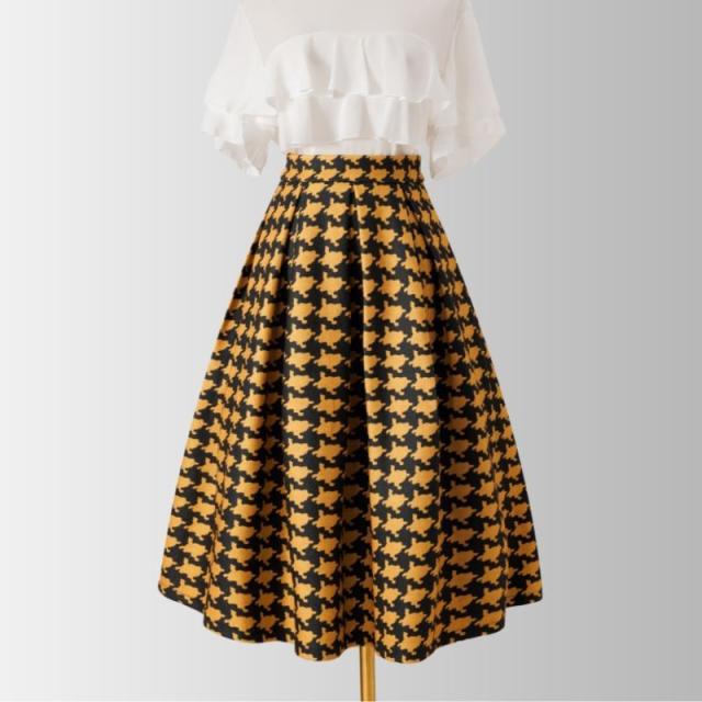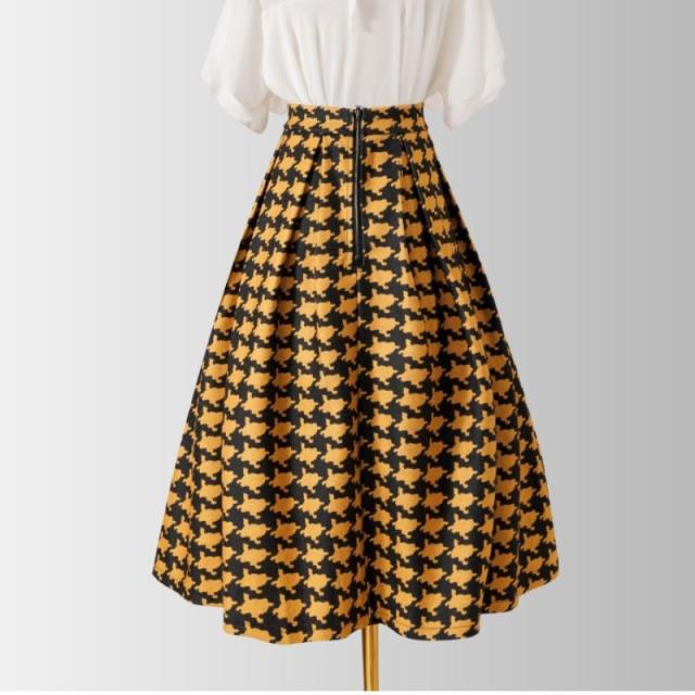 スカート レディース 千鳥格柄 チェック柄 フレアスカート ウール混 ボトムス Aライン フレア レディース ひざスカート 大きいサイズ ゆったり ハイウエストスカート 無地 春 秋 冬