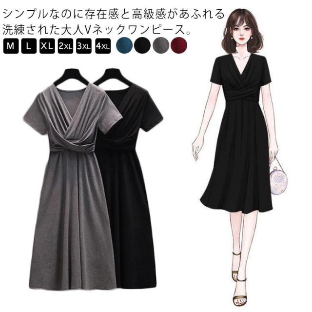 ワンピース 半袖 タイトワンピース Vネック カシュクール フェミニン 着?せ ストレッチ 薄手 フェミニン