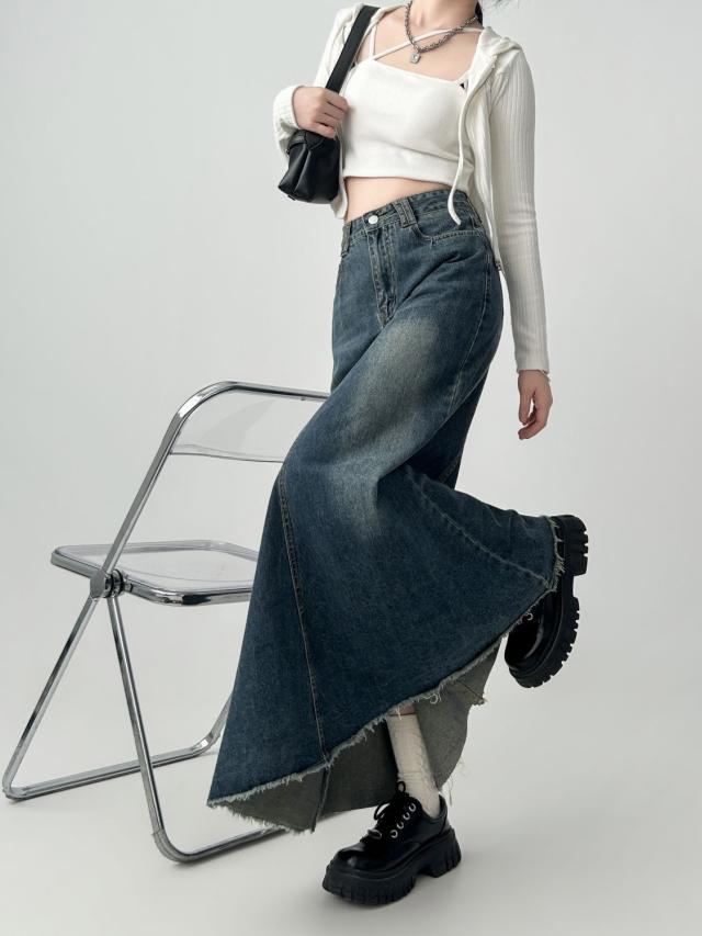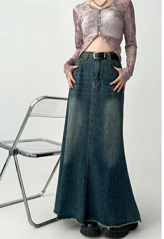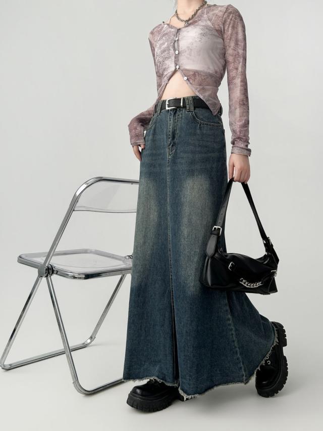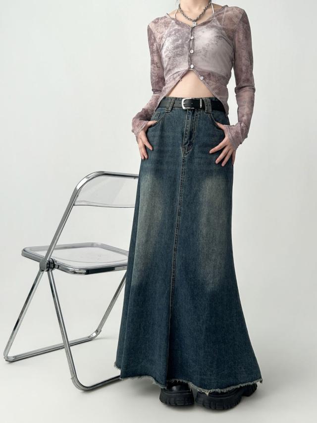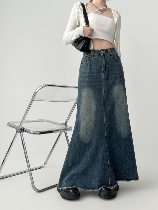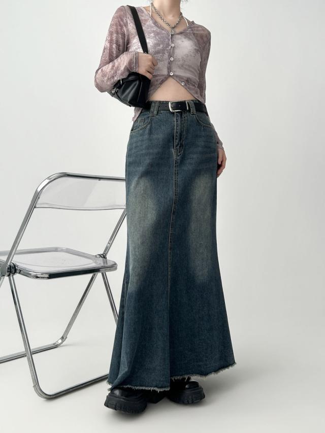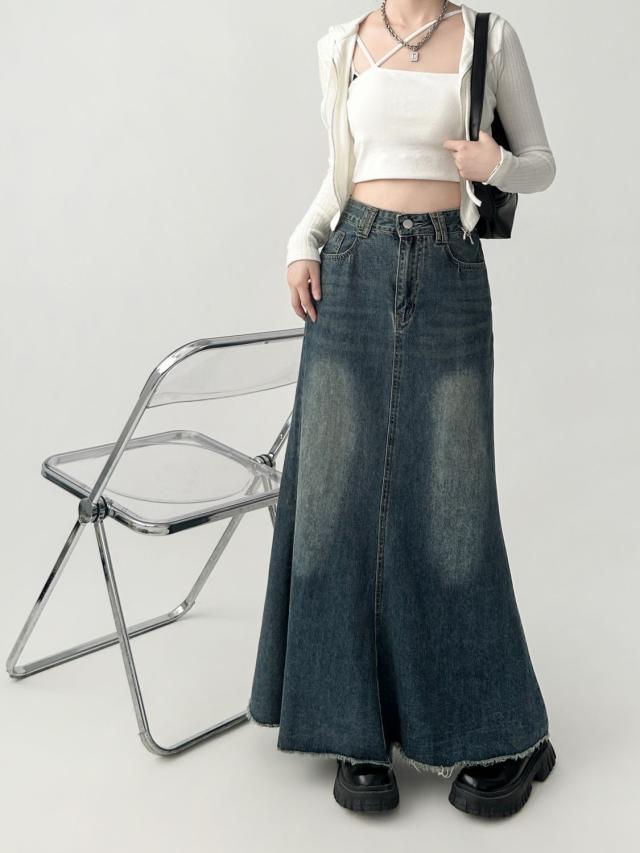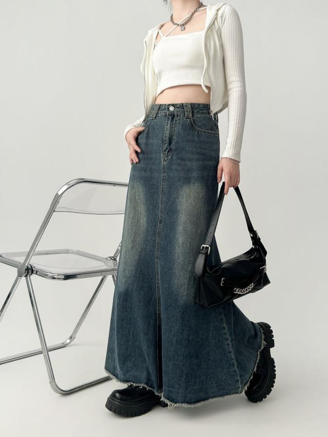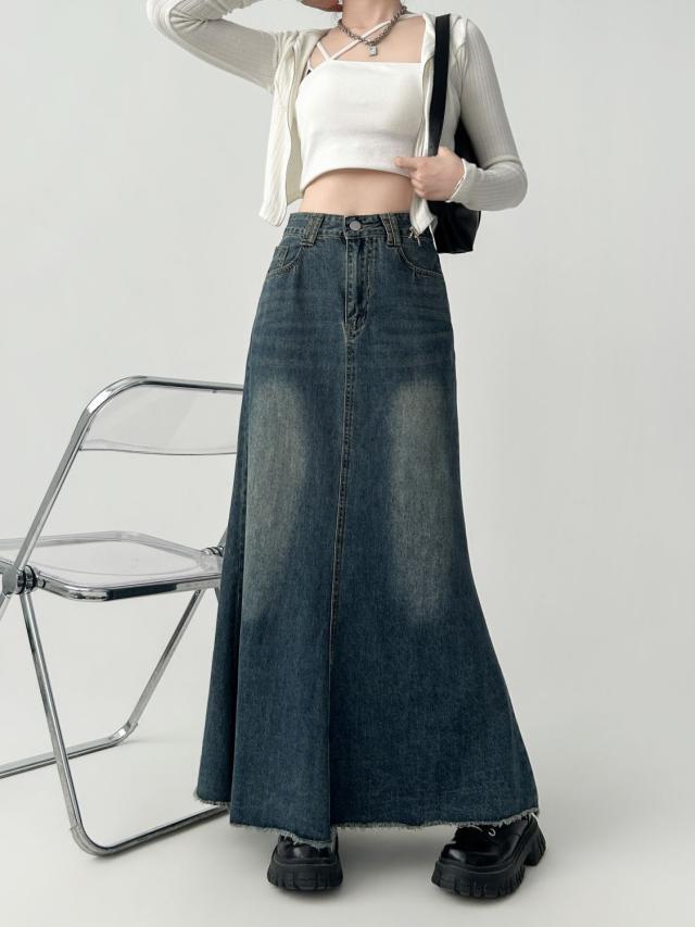 スカート タイトスカート デニムスカー ボトムス レディース 春夏秋冬 オールシーズン 薄手 伸縮性 ストレッチ ハイウエスト ロングスカート ロング マキシスカート マキシ 膝下 ひざ下 ミモレ丈